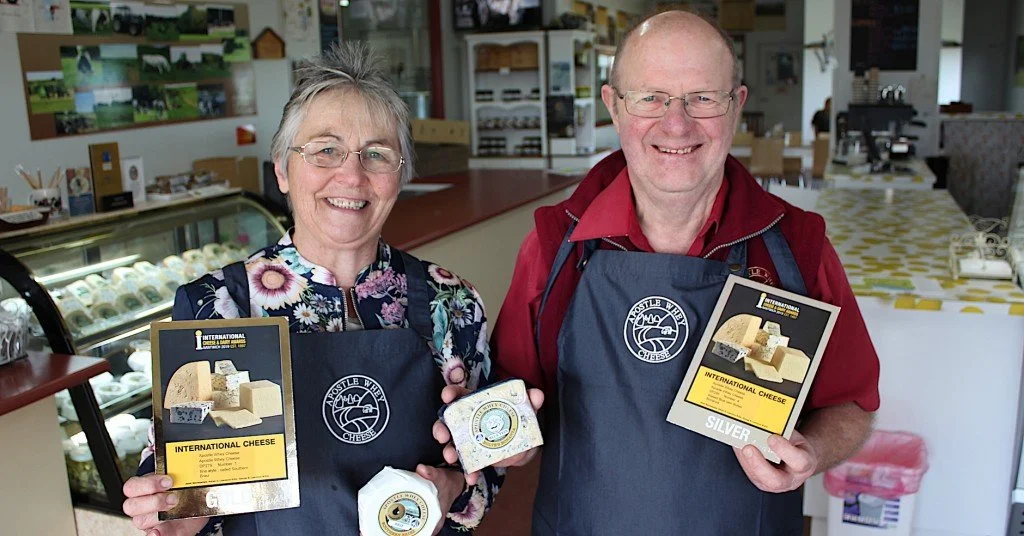 Apostle Whey Cheese owners Julian and Dianne Benson are toasting their success on the world stage after winning gold and silver at the International Cheese and Dairy Awards.
